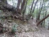 | 木戸公園から高嶺城へ、渓流沿いの気持ちのいい小路です。本丸北側と南側の石垣の違いが興味深い。 |