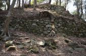 朝一番で歩いて大内氏館へ(山口駅からは徒歩20分ほど)。以前にも来たことがあったので新鮮さはなかったが、枯山水庭園や池泉庭園は綺麗だったし、現在館跡にある龍福寺本堂は重要文化財の建物なのでいい雰囲気だった。大路ロビーでスタンプを押したあと歩いて高嶺城へ。約15分で登山口のある山口大神宮に到着。 外宮・内宮から山の中へ。ひたすら石段が続く。岩戸社を過ぎた辺りからは山道が険しくなってたいへんだった。休憩をしながら1時間半ほどかけて本丸に到着。 本丸まではこれといって見所はなかったが、本丸の石垣は苦労して登ってきただけあって感動。南側は鏡石と思われる見栄えのいい大きめの石を使っているところがいい感じ。北側はけっこう高い石垣になっており、破城の跡も見られるところがよかった。 帰り道は同じ山道を下るのはたいへんそうだったので、途中から車も通れる道路を使って木戸神社方面へ安全に下りた。 残りの時間と翌日はたっぷりと山口市観光を楽しんだ(亀山公園、サビエル聖堂、雪舟庭、香山公園など)。 |