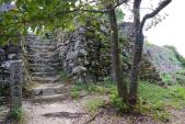 | 前日は徳島市内に宿泊し、レンタカーで麓の駐車場へ。駐車場は7台くらい駐車可能。 登山道入り口のポストに入っているスタンプを押印。方向の確認を怠り、90度曲がった状態で押印してしまった。 登山道は整備されているが、ほぼ登りで20分。結構ハード。 本丸の石垣は見事。また山頂からの眺めも素晴らしい。 帰りは蔭滝側から下山。所要時間は全部で1時間弱。 |