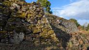 登山口にてスタンプ押印。石垣が残ってます。 |