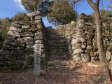 【好】大規模な山城。蔭滝の崖に圧倒された。この地域独特の緑系の石垣。山城は歩いていて楽しい。 本丸石垣からの眺めの気持ちよい。 【嫌】貯水池付近にスズメバチが!水の手丸付近で獣の鳴き声も! 【スタンプ】登山道入口のポストの中。マップも一緒にあります。 【駐車場】大日寺駐車場(バスを停める方)。無料。 【メモ】時計回りに回った方が良いです。蔭滝を登るのも大変。 トレッキングシューズとストックは必携です。 特に小倉丸、椎の丸、水の手丸、蔭滝のルートは険しいです。 |