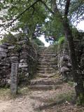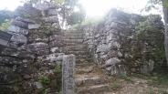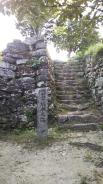 | 和歌山からフェリーで2時間。車で30分。城の看板の所から入り登城口前に普通車3台分の駐車スペースがありました。初穂料(100円)を納めるポストもあります。見事な石垣でした。朝から本当に暑かったので超スローペースで1時間20分の滞在でした。 |