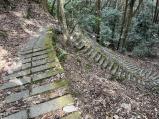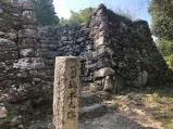 | 苔むしたようなコンクリートの登山口から次第に山城らしい雰囲気となり、突然本丸跡の想定外の石垣と面白い展開ですが、その奥から道がわかりにくくなります。 |