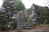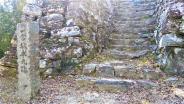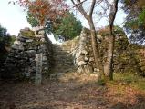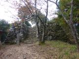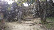 | 一宮神社に車を停めて目の前の入口より登城。石段の数は相当多く登る足元にはどんぐりがいっぱい落ちていた。夕方の4時頃一人だったせいか薄暗くクマも出てくるのではないかと思うような登城でした。 |
