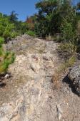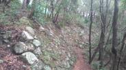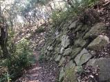 高松道疋田ICから古い街並みを抜け、神社の前を通り、看板にしたがって駐車場へ。すぐ前に登城口がありいきなり急坂を昇り始める。かなりきつめの坂で途中から岩場的な道になる、登城口で竹杖を借りて正解!ただし見晴らし景観はとても良い。時間の制約で本丸付近でUターンしたが、実はそのさきに石垣があったようで残念。ここに建物があった事があまり想像できないようなロケーションでした。 |
