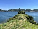 続97城目。四国側からしまなみ海道を伝い大島へ。大島南インターを降りてから、早速村上海賊ミュージアムへ向かった。能島城上陸ツアーは事前予約制。梅雨の中休みで猛暑だったが、クルーズで向かう途中は海風があたり涼むことができた。14世紀中頃以降の築城と伝わる。村上海賊の一族である能島村上氏は、芸予諸島を中心に勢力を誇り、来島村上氏・因島村上氏とともに三島村上氏などと称される。1587年、能島村上氏が小早川隆景に従って筑前に移ったことで、廃城となったといわれる。島の周囲は潮流が渦巻いており、難所であると実感できた。南部平坦地から上陸し、各曲輪を回りながらガイドの方に出土物や歴史、地理など解説していただいた。各曲輪は土塁や堀切はなく、海に対して開放的。東南出丸から見る鯛崎島など島々の景色が爽快だった。 |