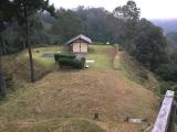 | 続2城目。(8/200) 宇和島城から車で30分ほどで到着。風呂ヶ谷駐車場まであと少しの所で、案内を見落として通りすぎたりした。 駐車場に着くと、他に車が無かった。 無事にたどり着けるのか不安になりながら小道を進むと、最初に第十曲輪があらわれほっとする。ノートには日本各地から登城した人達のメッセージがあって読むのが楽しい。 雲行きが怪しくなったので、スタンプを押してすぐに引き返す。地図から想像するに、かなり広い縄張だと思う。 途中で蛇を見たし、足場もそれほど整備されていないので、靴など足元には注意した方がいい。 |