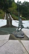 | 高知市内の前に坊主と訪問。 スタンプを押して高知県立歴史民俗資料館を観覧し、裏山から登ろうとしたところ、またしても坊主が「怖い」アピールをしてことで、登城は途中で断念。高知県立歴史民俗資料館の裏にあった、長槍を携えた長宗我部元親の銅像にも「怖い」と言い出し、記念撮影もせず近くの銅像が見えない壁の影に隠れてニヤけてる始末。途中まで登ると、周りの見渡しがよく、上まで行きたかったな〜と感じた。 高知市内に移動して、ひろめ市場へ。人が少ないからか、あまり商品も出ていなくてガッカリ。息子は餃子を持ち帰り、ホテルで食べてご満悦。 |