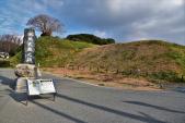 水城館は正月休みなので、JR水城駅でスタンプ押印の後、徒歩で展望台まで行きました。直線距離なら10分程度の距離ですが、途中の川を渡る橋が遠く、また高速とバイパスを超える地下道が少ないので、片道30分ほど掛かりました。 展望台からは遺構が一望できますね。そして展望台の先にも道は続いており、頂上と思われる場所に石碑のような物がありました。 |