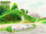 水城110城目。レンタカーで大野城から、太宰府天満宮、太宰府政庁を経由して水城へ。水城館では、ここでもスタンプを押せるが、すでに大野城市役所で押印しているので資料と発掘の様子を見てから横の昇り口へ。小高い丘から、全体像を見ることができる。大野城と同じく白村江の敗戦後に築かれた、太宰府防衛の城。直線的な防衛ラインが面白い。 |