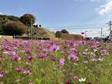 | 東大門駐車場に駐めて水城館へ。ちょうど、周辺のコスモスが満開で、堤横も駐車スペースとして開放されていたが、満車だった。 水城館で押印後、堤上へ・・・基肄城に行ったばかりなので、守りのイメージがわいて良かった。 |