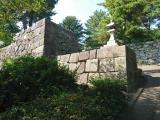 | 続78城目。スタンプは、篠山神社社務所に箱に入れられて置かれていた。ここも予想通りパンフ、マップは無し。 立派な石垣が残っている。門跡、櫓跡など神社の境内をぐるっと一回りして終了。何だか良く分からなかった。 続100名城は、のぼりを掲げたり、カラーの立派なパンフレットが置いてあったりと、力を入れている所が多い気がするが、ここは全然やる気無し。今は神社だから仕方ないか… |