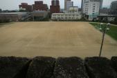 江戸城の外堀が埋め立てられて上智大学のグラウンドになっている。ここ久留米城のお堀も埋め立てられて久留米医科大学のグラウンドになっている。何と城のお堀のあと利用に共通点を見つけた。これも城歩きの楽しさである。 |