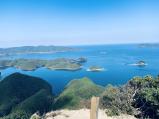 | 博多港から夜行フェリーちくしに乗船。 平日だからか、1等船室独り占め出来て快適に過ごせた。 朝7時に下船し、モスで朝食取ってからバスで旧中対馬病院で下車。 ちょっと歩いて公民館(朝は8:45分から)でスタンプGET。 すぐタクシー呼んで、13分2050円で城山登山口に到着。 キツくは無いけど長い上り坂をひたすら歩いて50分位で砲台跡。 そこからキツい山道を5分位登るとようやく頂上。 汗だくでめっちゃ疲れたけど、頂上からの景色は超絶景。 帰りは東屋まで戻り、三ノ城戸周って2時間で登山口に帰還。 タクシー呼んでおいたので、すぐ乗って20分2350円でグリーンパークまで。 誰も居ない海水浴場で綺麗な海見ながらしばし休憩し、そこから歩いて20分位で対馬空港へ。 |