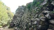 | 4日目、1城目で行きました。 風が強く福岡空港から飛行機が出るか微妙でしたが何とか大丈夫で行けました。 お昼前にお城の登山道についたのですが4台車が止まっていて、一つ下の駐車場に止め登りました。 石垣がすごかったです。 |