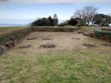 | 入口の駐車場からは相当な距離があるので、城内まで進めて駐車した。 本日も発掘調査が行なわれており、いまだに人骨が見つかっているのかと思った。 眺望はすばらしく、遠く談合島(湯島)まではっきり見えた。 |