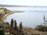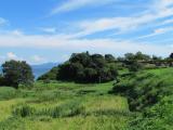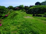 | 原城前バス停で降りると、ビニールハウスと水田の向こうに小高い丘が広がる。世界文化遺産の原城址である。1637年から1638年の冬に起こった島原・天草の乱で一揆軍が立て籠ったのがこの城である。 広い草原となっている二の丸跡を通り、本丸跡に向かった。本丸入口に残る建物の礎石や階段の石などをたどると大きな枡形になっていたようだ。総合案内所に立ち寄り、スタンプを押し、原城の案内マップを手に入れた。 一揆軍を鎮圧した後、幕府軍は原城の建物はもちろん石垣に至るまで徹底的に破壊したらしい。発掘調査をすると破却された石などが大量に出土したそうだ。現在の原城は破壊された当時から少し復元されたのだろうか? 本丸跡は広場になっていて、海側に櫓台跡もある。ここは海にせり出した台地で海側は3,40メートルの断崖となっている。海の向こうには天草の山々が見え、景色は最高のポイントである。 二の丸跡から海岸まで降りると、島原半島ジオパークの案内板がある。9万年前の阿蘇山巨大噴火に伴う火砕流が堆積したのが、原城跡の小高い丘とのことだ。 |