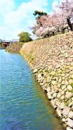 2度目の登城 前回は大河ドラマの時でしたから少し時間が経っています。桜の季節、紅白の横断幕が城の周囲に張ってあり花見会場になっていました。 |