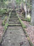 久留島氏庭園を見て、その右奥の末広神社脇の登城道から角牟礼城を目指します。資料館で頂いたマップには、登城道が赤く一直線で描かれています。嘘だろうと思いながらいざ登り始めると、確かに山頂に向かって一直線のきつい登り道が存在しました。これが大手道だったのでしょうか。
