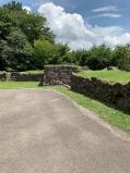 いよいよ最終日、本日は角牟礼城からです。別府温泉から50分程で童話の里くすに到着し、ここでタクシーに乗り換えて、8分程で三の丸に着きました。この城は奈良大学の千田教授が発見したそうです。それまで町では発掘調査ができる職員はいなかったそうで、急遽1名採用したそうです。ここの石垣は実際に穴太衆が積んだそうで、穴太積みと呼んでいるそうです。ここも坂道が結構急なところがありました。水ノ手曲輪を除いてほぼ一周しましたが、50分程かかりました。ここからまたタクシーに乗り豊後森藩資料館(童話の里と隣接)でスタンプを押印しました。 |