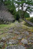 | 三の丸駐車場からガイドさんの説明を聞きながら歩く。道幅は広いが、砂利道ですべりやすい。石垣は穴太積み。不動明王像の右足の指が6本と教えてもらう。 (三の丸まで行くのに道が狭い。タクシーで10分位。歩くと30分?かかるかも) |