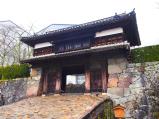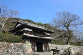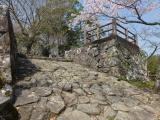 | ツアー4城め。ここも桜に関するイベントを実施中であり、城にプラスしての見応えがあった。山中至る所に、石垣遺構が残るようだが、当時の建築が残る貴重な三の丸櫓門の近辺に、近所の児童らがお祭りで楽しそうに待ち合わせしたり、買い食いして群れなしていたのが印象的であった。 |