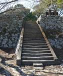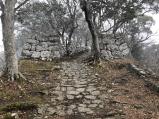 | 続・登城13番目 延岡城からレンタカーで約1時間。東九州自動車道の無料区間なので有難い。歴史資料館でスタンプ押し、登城。大きな無料駐車場もあり、、嬉しい限り。三の丸櫓門は唯一現存の遺構。複数登城ルートはあるようだが、一番上がりやすい国木田独歩の道を進む。20分かからずに山頂まで登り、石垣を堪能。下山はあまり整備されていない真ん中の「登城の道を選択。細かな石が崩れ落ちていたりして多少歩きにくい。 |