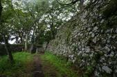 続18城目 本日3城目も山城の佐伯城です。三の丸櫓門を抜けると登城ルートが3コースに分かれます。相変わらず小雨が降っています。一番安全と思われる独歩碑の道コース(Aコース)で本丸・天守台を目指します。山頂の石垣は素晴らしかった。 |