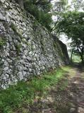 到着時は雨だったので、先に歴史資料館から行きスタンプゲット。館内を見学しているうちに雨が止んだので登城開始。今日は天候が不安定で、晴れたかと思うと突然雨が降ったり…そのため3つある登山ルートの中から最短距離の正面の道を選択しました。ほぼ一直線に登って行くので急斜面の連続ですが、15分ほどで到着します。 頂上に着いたら日が差してきました。石垣が素晴らしいですね。 |