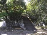| 晴れてたのに歴史資料館出たら雨降ってた。 でも少し待ってたらやんだので登城開始。 真ん中の登山道で15分くらいだが、真夏に登るものではない。 |