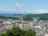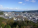 「さえき」ではなく「さいき」である。佐伯駅そばの観光案内所で地図と資料を入手しレンタサイクルで、佐伯市歴史資料館で押印。唯一の現存遺構三の丸櫓門は背後の佐伯文化会館を解体中のため通行不可であったが藩政時代より続く登城の道で山上へ向かった。平地に築城するのが主流となった時代に毛利高政が敢えて山上に近世城郭を築城したものであり、堅固な石垣や素晴らしい眺望(平坦部の街並み、川の流れ、海の青さ、緑の山々や島々)を楽しむことができる。 |