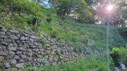 | 臼杵城から約40分。13:40ころ無料駐車場に停めて、門をくぐり、遅れ取り戻すためトレラン仕込みを存分に発揮し、10分程度で頂上へ。着くとなんとそこかしこの石垣、岡城を彷彿とさせる陣容で引き止められる。比較的新しい城で、実戦はなかったかもしれないが、だいぶ堅牢w。結局あまり遅れを挽回できない・・・ |