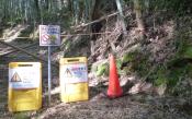 | 3年ほど前に登城したときは、山の上まで上がっていった覚えがあるのですが、このときは土砂崩れか何かで登城禁止となっていました。 |