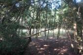 続14城目 桜島経由で志布志城へ向かう。埋蔵文化財センターで志布志城へのルート案内とスタンプをお願いしました。小学校の裏口から荒れはてた家屋の脇を通ると登城口です。本丸から少し下ったシラス山を削った深い空堀を見て登城終了です。山頭火の句碑「飲まずには通れない水がしたたる」のある水辺で水分補給して志布志を後にしました。 |
