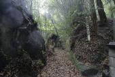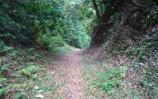 | シラス台地の空堀は大雨の影響で所どころ崩れている所があった。また、ここ数日の雨で本丸へ向かう空堀の道は雑草が左右とも覆いかぶさっていて歩きづらかった。埋蔵文化財センターで頂いたパンフは数が多くて志布志城を知るには大変ありがたかった。 |