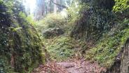 | 志布志城に続いて訪問したが、こちらも雨のため登るのは断念。 シラス台地に掘られた堀割のみ見てきた。 |