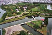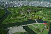 | 五稜郭タワーからの五角形の美しい形は外せません。お堀や土塁等美しい形がそのまま残っています。電車で五稜郭駅から少し歩きます。 |