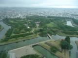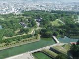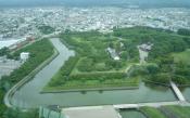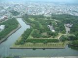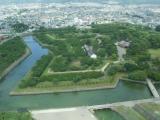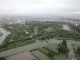 五稜郭タワーから見下ろすと、独特の形状の城郭と堀が見ることができます。緑色で奇麗でした。 |