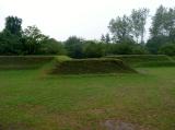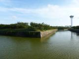 | すぐ近くの五稜郭タワーから全景が見下ろせます。入場料が840円もしますが、城内に入ってしまうと星形の形状はほとんど実感できませんので、登るしかありません。ただ、ここの展望室からでも、なかなか全景を写真に収めるのは難しく、端が切れてしまうか、窓枠が写ったりしてしまいます。城内は想像していたよりも狭く、一周してもそれほど時間を要しません。 なお、五稜郭から東北へ3?行ったところに四陵郭があります。タクシーで五稜郭付近から1500円前後の距離です。こちらは建物は何もありませんが、土塁がよく保存・整備されており、また、規模が小さいことから全景を見渡すこともでき、五稜郭よりも雰囲気がありました。写真はあえてその四陵郭を。 |