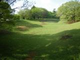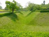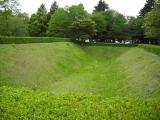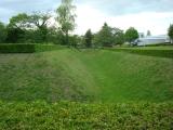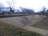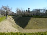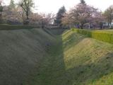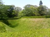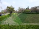 | 歴博の駐車場にバイクを停めて歩いていきました。過去に歴博は2回来ているのに、佐倉城を意識したことはありませんでした。 天気もよく、家族連れでのんびりしたり、犬の散歩などの人が多くて、城という感じがしません。空堀などの遺構はたくさん残っています。 |