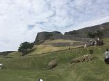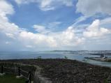 | 座喜味→中城と来て最後に勝連城へ。 中腹まで電動車で上げてもらいそこから登城しました。 石段だと角度が着いており登りにくかったため、新たに階段を付けてもらえていたのはありがたいところでした。 景色は最高でしたが、風が強かったです。資料館の映像の時間帯はもう少し頻度を上げたほうが良いと感じましたね。 |