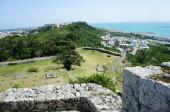 | レンタカーで中城城から移動。あまわりパークで歴史を学んだ後、お城へ。カートで中腹まで運んでもらい、そこからは階段を登って全体を見学。比較的低い石垣を曲線的に使い、何層にもめぐらされた広大なお城。お天気がよく、日差しがきつかったが、景色の写真はとてもキレイにとれた。 |
