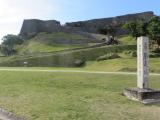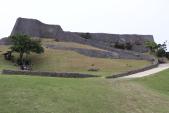 那覇バスターミナルから路線バス1時間半かけて城跡前に到着。休憩所でスタンプとパンフレットをもらって城跡に向かいました。グスクは見事な城壁で見応え十分で、また城壁上からの眺望も抜群でした。 |