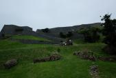| 午前中雨が降ったりやんだりの天気。休憩所の駐車場に車を止めた時は降っていなかった雨が、スタンプ押印し坂を途中まで登ったところ降り出したので途中で引き返し、一の曲輪まで行けなかった。残念! |