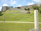 続11城め。コザから車で30分くらい。駐車場も入城も無料なのに休憩所は充実。 スタンプは休憩所に。 小高い丘を登っていくが、下から見上げると壮観。上から見下ろしても壮観。 まだまだ復元中だが、景色最高。 雨の日は滑りやすいので注意。 |