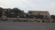 | 金曜日は休園日です。スタンプだけいただき、歩道橋の上から天守台をのぞきこみましたー。 |
