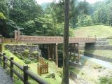 | 山城もありますが連れに問答無用で却下され御主殿跡まで。 横に小川が流れていて涼し気です。が、ここは有名な心霊スポットのようです。(もやもやもや)秀吉軍に皆殺しにされた城兵の祟りです。(もやもやもや)カーナビが渋滞の圏央道の上で案内を放棄したのはそのせいでしょうか...、いやきっとそうに違いない!(ただのポンコツナビの暴走やろ) 駐車場(無料)はガイダンス施設の横にあります。 |