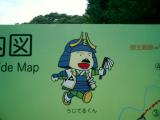 | 車で管理棟近くの駐車場(無料)まで直行。 時間の都合で本丸登城は断念。 マスコットキャラクターのうじてるくんがかわいらしい。 100名城でも「ゆるキャラ」ブーム? あ、ゆるキャラ界のカリスマ彦にゃんも100名城関係者か。 |
