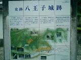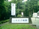 | 高尾駅から西東京バスに乗り霊園前で下車。八王子城跡入口の信号を左へ行くと、15分くらいで管理棟へ到着。ちょうど8時30分でオープンしたところ。スタンプは管理棟の前にゴム印式のものが置いてあります。パンフレットをもらってまず御主殿跡の方へ向う。曳橋を渡って御主殿跡へと思ったら、橋の上に体長5cmくらいのスズメバチが!飛び去っていくのを待って何とか橋を渡る。これからの季節、マムシもさることながら、スズメバチにも要注意です。 その後、管理棟のところまで戻り、いよいよ本丸跡へ向けて山を登る。新道を通って、30分くらいで八王子神社へ到着。そこからさらに登って本丸跡へ。帰りは旧道を通りましたが、ところどころ水が流れて道の真ん中が削られ、溝のようになっており歩き難いところがあった。 |