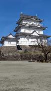 | 85城目 八王子城から車で移動。圏央道ー小田原厚木道路経由で1時間強でした(ほとんど渋滞無し、やや急いで運転しました)。 駐車場はやや混雑していましたが、藤棚駐車場がちょうど空きがありスムーズに停められました。 土曜日の3時くらいでしたが結構賑わっていて城内は梅も咲き始めていていい香りが漂っていました。 天守内は刀剣の展示もあり結構良かったです。 |